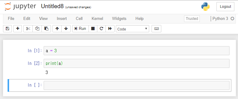 실제로, 파이썬에서 많이 쓰는 IDE 툴인 Jupyter Notebook에서 파이썬을 실행하는 예를 들면,